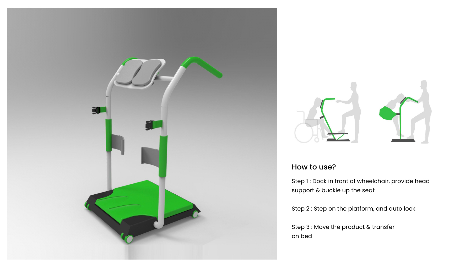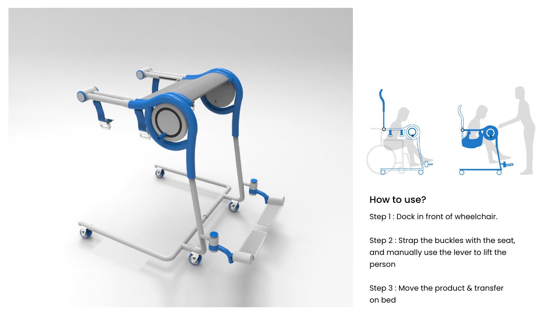 Another option I explored in assistive aid product category, where the caregiver can use his/her counter weight and lift the patient and transfer them to the bed.